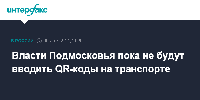 "Мы рассматривали такую возможность, (внедрение системы QR-кодов о сделанной прививке против новой коронавирусной инфекции при использовании общественного транспорта - ИФ) но при таком уровне вакцинации мы очень постараемся не доставлять дополнительных хлопот нашим жителям", - сказал Воробьев в среду в эфире телеканала "Россия-24" (ВГТРК).