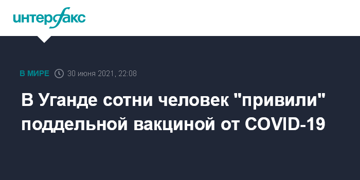 Москва. 30 июня. INTERFAX.RU - В Уганде по меньшей мере 800 человек "привили" поддельной вакциной против коронавируса COVID-19, сообщает в среду местное издание Daily Monitor.