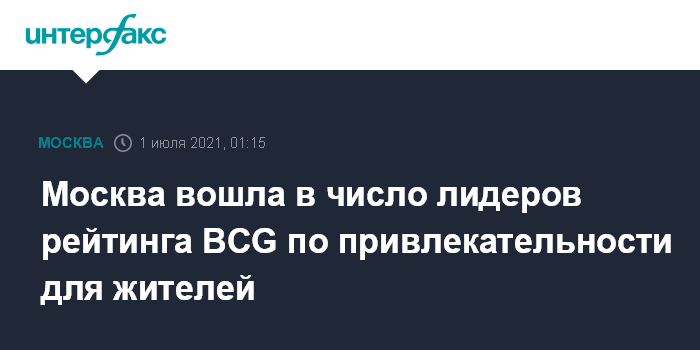 Москва. 1 июля. INTERFAX.RU - Москва стала одним из самых привлекательных городов для жителей среди 16 мировых мегаполисов, говорится в исследовании Boston Consulting Group (BCG), подготовленного к открытию Московского урбанистического форума (Moscow Urban Forum-2021).