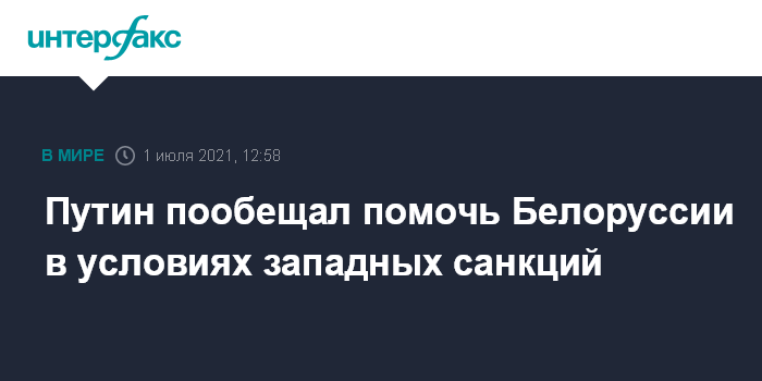 Путин пообещал помочь Белоруссии в условиях западных санкций