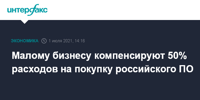 Москва. 1 июля. INTERFAX.RU - Малые и средние предприятия смогут получить субсидию на компенсацию 50% расходов на покупку российского программного обеспечения (ПО), в 2021-2024 годах на это будет направлено 7 млрд рублей. Постановление об утверждении правил предоставления субсидий подписал премьер-министр РФ Михаил Мишустин, говорится в сообщении кабмина.
