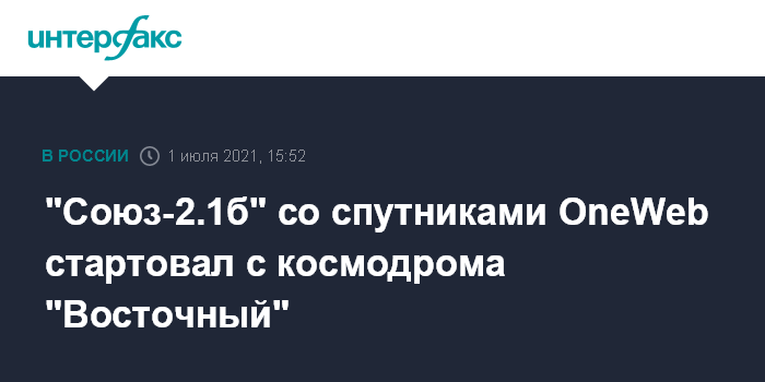 Москва. 1 июля. INTERFAX.RU - Ракета-носитель "Союз-2.1б" с 36-ю спутниками связи британской компании OneWeb стартовала с космодрома "Восточный".