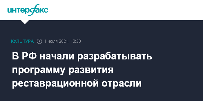 Москва. 1 июля. INTERFAX.RU - Программа развития реставрационной отрасли на настоящий момент находится в стадии разработки, сообщила министр культуры РФ Ольга Любимова.