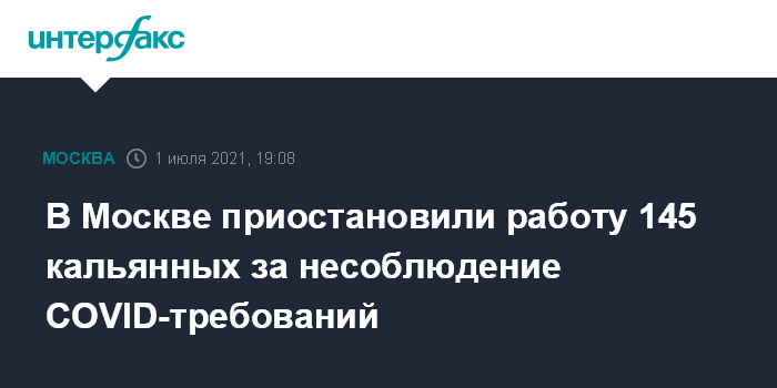 Москва. 1 июля. INTERFAX.RU - Роспотребнадзор столицы за период действия ограничений, связанных с угрозой распространения COVID-19, приостановил деятельность 145 кальянных за несоблюдение санитарно- эпидемиологических требований.