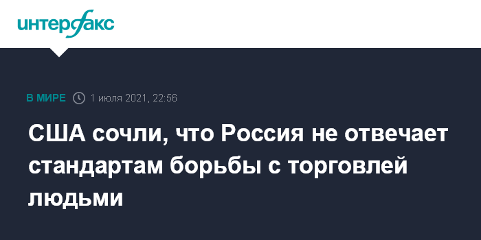 Таким образом, в документе Россия отнесена к третьей категории государств, действия которых, по версии США, не отвечают минимальным стандартам борьбы против торговли людьми.