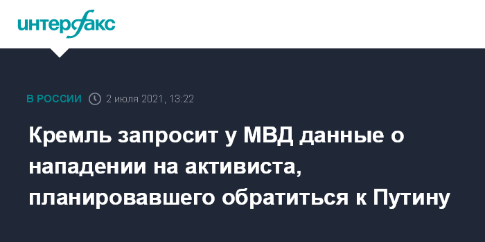 Кремль запросит у МВД данные о нападении на активиста, планировавшего обратиться к Путину