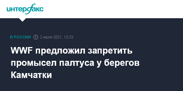 Москва. 2 июля. INTERFAX.RU - Всемирный фонд дикой природы (WWF) России обратился к руководителю Росрыболовства Илье Шестакову с предложением ввести временный запрет на промысел палтуса у берегов Камчатки из-за снижения запасов этой рыбы, сообщает пресс-служба фонда.