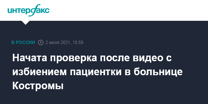 Москва. 2 июля. INTERFAX.RU - Служебная проверка проводится после публикации об избиении пациентки сотрудницей больницы в Костроме, сообщили "Интерфаксу" в департаменте здравоохранения региона.