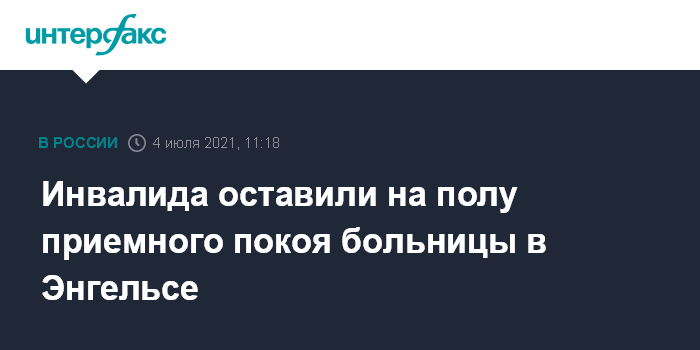 Москва. 4 июля. INTERFAX.RU - Врачи приемного покоя больницы №1 города Энгельса оставили на полу нуждающегося в помощи мужчину-инвалида, написал зампред правительства Саратовской области Роман Грибов в своем инстаграме.