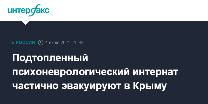 Москва. 4 июля. INTERFAX.RU - Тридцать пациентов психоневрологического интерната, который подтопило после дождей в Бахчисарайском районе, эвакуируют, сообщила "Интерфаксу" глава районной администрации Людмила Пучкова.