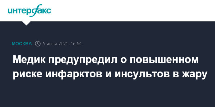 Медик предупредил о повышенном риске инфарктов и инсультов в жару