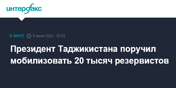 Президент Таджикистана поручил мобилизовать 20 тысяч резервистов