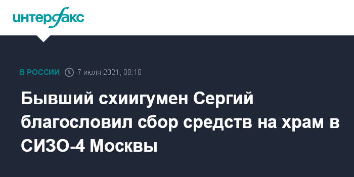 Бывший схиигумен Сергий благословил сбор средств на храм в СИЗО-4 Москвы
