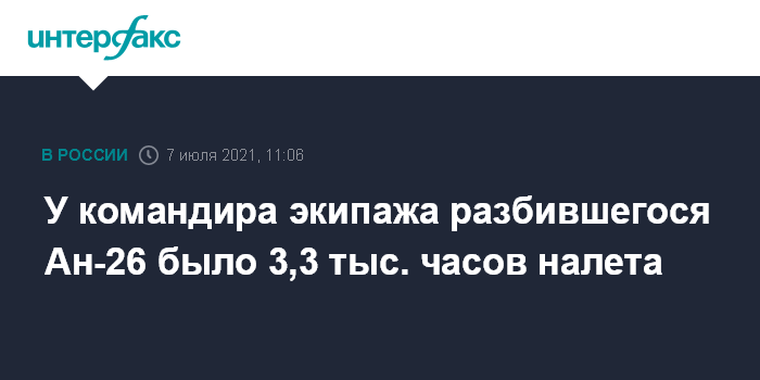 Москва. 7 июля. INTERFAX.RU - У экипажа разбившегося на Камчатке пассажирского самолета Ан-26 был большой опыт работы, сообщается во вторник на сайте правительства Камчатского края.