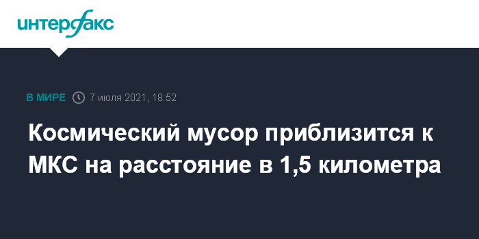 Москва. 7 июля. INTERFAX.RU - Космический мусор, который сблизится на орбите с Международной космической станцией (МКС) в четверг, пролетит в полутора километрах от станции, сообщает "Роскосмос".