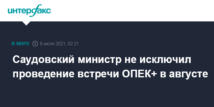 Саудовский министр не исключил проведение встречи ОПЕК+ в августе