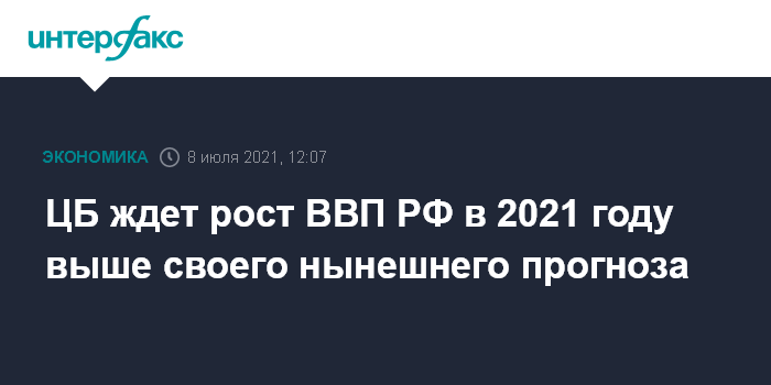 ЦБ ждет рост ВВП РФ в 2021 году выше своего нынешнего прогноза