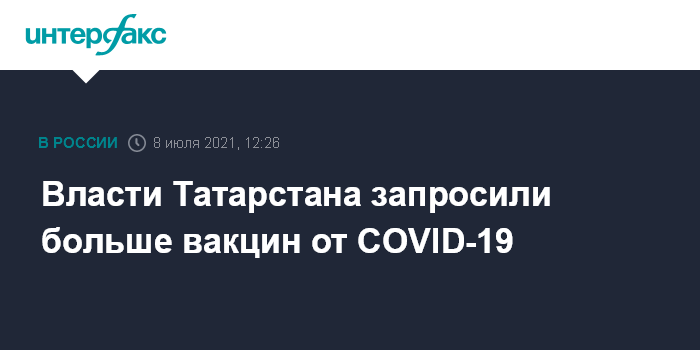 Москва. 8 июля. INTERFAX.RU - В Татарстан направляют недостаточное количество вакцин от коронавируса, спрос превышает поставки, сообщила журналистам руководитель пресс-службы президента республики Лилия Галимова.
