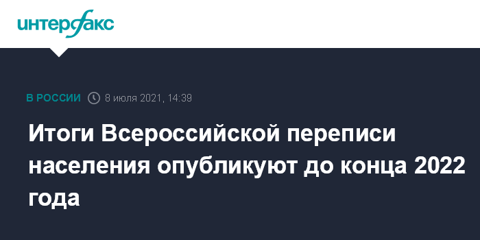 23 июня правительство в третий раз перенесло сроки проведения основного этапа Всероссийской переписи населения, теперь ее наметили на период с 1 по 31 октября 2021 года. В отдаленных и труднодоступных районах ВПН продлится до 20 декабря 2021 года.