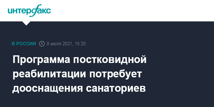 Москва. 8 июля. INTERFAX.RU - Программа постковидной реабилитации, на которую до 2026 года совокупно будет выделено 100 млрд рублей, потребует дооснащения новым оборудованием медицинских учреждений и санаториев, сообщила спикер Совета Федерации Валентина Матвиенко журналистам в четверг.