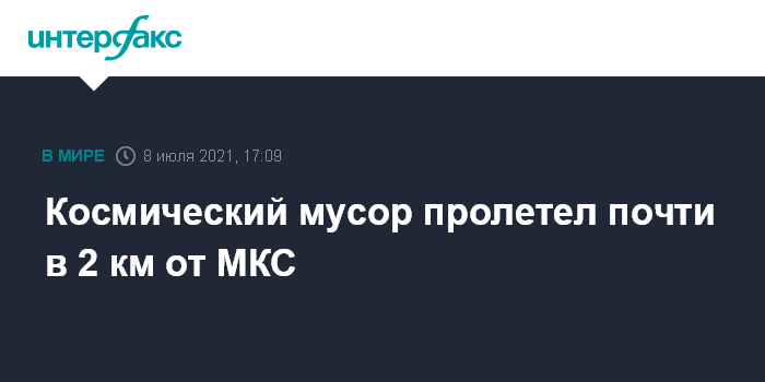 7 июля в госкорпорации сообщали, что космический мусор, который сблизится на орбите с МКС в четверг, пролетит в полутора километрах от станции. Отмечалось, что в случае, если данные об опасном сближении подтвердятся, будет принято решение о необходимости коррекции орбиты станции.