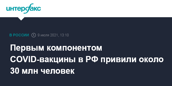 Москва. 9 июля. INTERFAX.RU - Около 30 млн россиян привились первым компонентом вакцины от коронавируса, заявил в пятницу глава Минздрава РФ Михаил Мурашко.