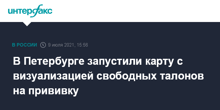 Москва. 9 июля. INTERFAX.RU - Комитет по здравоохранению запустил в Петербурге интерактивную карту с визуализацией наличия свободных слотов для записи в пунктаы вакцинации от коронавируса, сообщается в пятницу на сайте комитета.