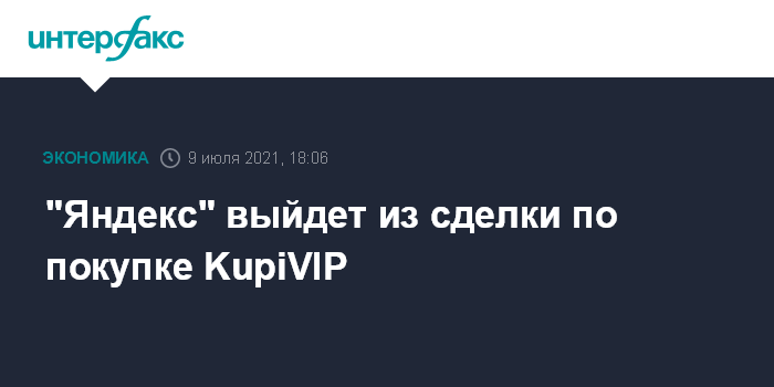 "Яндекс" выйдет из сделки по покупке KupiVIP