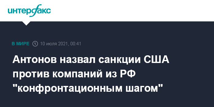 Антонов назвал санкции США против компаний из РФ "конфронтационным шагом"