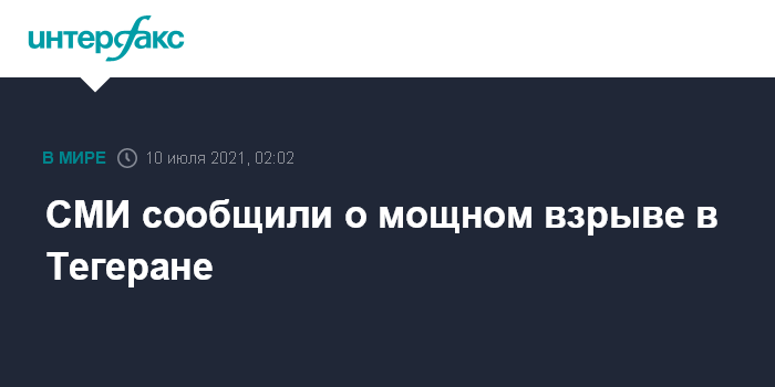 Москва. 10 июля. INTERFAX.RU - В восточной части Тегерана прогремел мощный взрыв, его причины неизвестны, сообщает Al Arabiya со ссылкой на иранское информационное агентство Fars.
