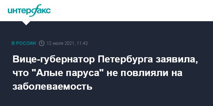 Вице-губернатор Петербурга заявила, что "Алые паруса" не повлияли на заболеваемость