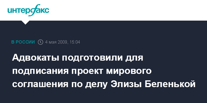 Адвокаты подготовили для подписания проект мирового соглашения по делу Элизы Беленькой