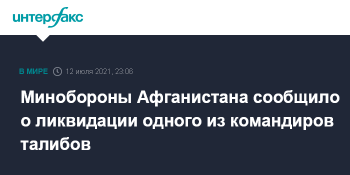 Москва. 12 июля. INTERFAX.RU - Министерство обороны Афганистана в понедельник объявило о ликвидации одного из полевых командиров террористической группировки "Талибан" (запрещена в РФ) Азиза Рахмана.