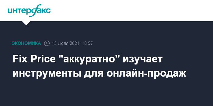 Москва. 13 июля. INTERFAX.RU - Ритейлер Fix Price, управляющий сетью магазинов низких фиксированных цен, "аккуратно" изучает перспективы развития онлайн-продаж.