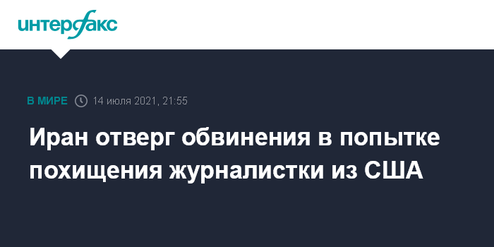 Москва. 14 июля. INTERFAX.RU - Тегеран считает необоснованными обвинения США в адрес иранской разведки, которую Вашингтон обвинил в попытке похищения нью-йоркской журналистки, критиковавшей Исламскую республику, пишут в среду американские СМИ.