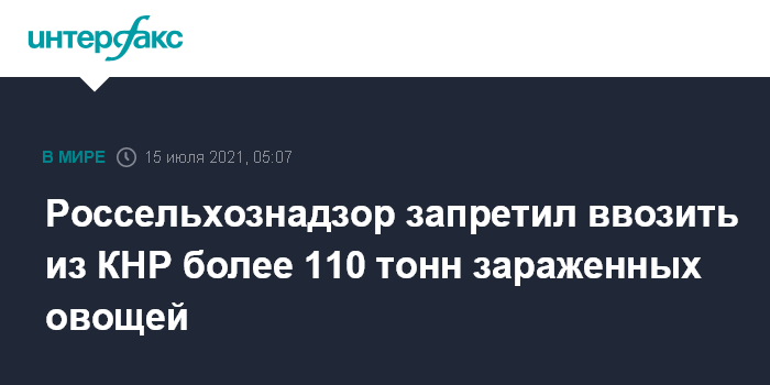 Россельхознадзор запретил ввозить из КНР более 110 тонн зараженных овощей