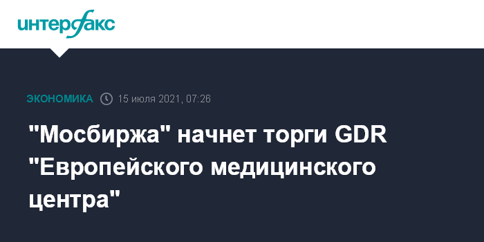 Москва. 15 июля. INTERFAX.RU - "Московская биржа" в четверг начнет торги депозитарными расписками "Европейского медицинского центра" (ЕМС).