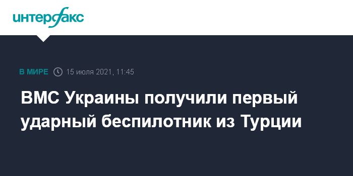 Москва. 15 июля. INTERFAX.RU - Первый ударный беспилотный комплекс Bayraktar TB2 производства Турции поступил на Украину, сообщает украинское военное ведомство.