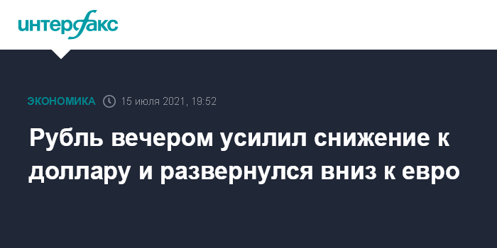 Москва. 15 июля. INTERFAX.RU - Доллар ускорил повышение, евро перешел к росту на "Московской бирже" в четверг вечером; рубль дешевеет к бивалютной корзине в связи с уменьшением интереса инвесторов к рисковым активам, обусловленным словами председателя Федеральной резервной системы (ФРС) Джерома Пауэлла о возможных сроках начала сокращения объема выкупа активов, а также дешевеющей нефтью.