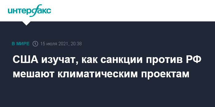 Москва. 15 июля. INTERFAX.RU - Соединенные Штаты проведут оценку того, как санкции влияют на российские проекты в области климата и что можно сделать, чтобы преодолеть это влияние. Об этом заявил спецпредставитель президента США по вопросам климата Джон Керри.