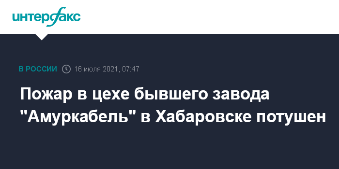 "В 13:07 по местному времени (06:07 мск) пожар в цехе на территории бывшего завода "Амуркабель" по улице Артемовской полностью ликвидирован", - сказано в сообщении.