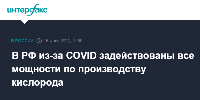 В РФ из-за COVID задействованы все мощности по производству кислорода
