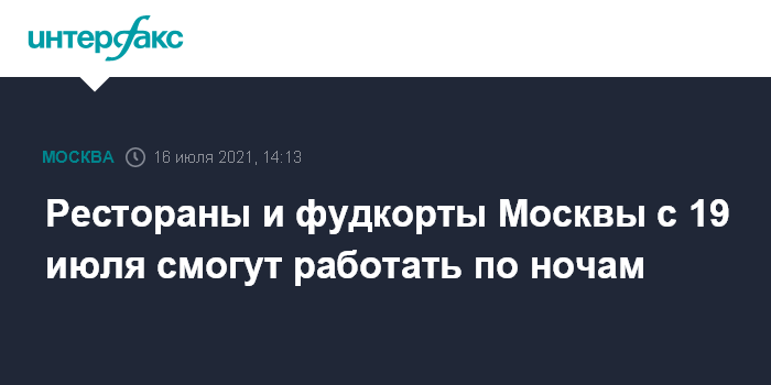 Рестораны и фудкорты Москвы с 19 июля смогут работать по ночам