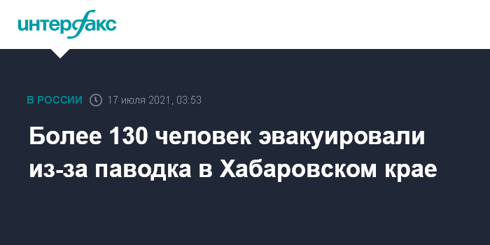 Москва. 17 июля. INTERFAX.RU - Больше 130 человек эвакуировали из Верхнебуреинского района Хабаровского края из-за паводка, возникшего после сильных ливней. И.о. губернатора региона Михаил Дегтярев вылетел на место происшествия, чтобы помочь жителям.