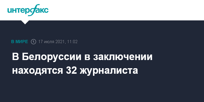 Москва. 17 июля. INTERFAX.RU - После прошедших в пятницу обысков и допросов остаются под стражей четыре журналиста, всего в заключении на данный момент - 32 представителя СМИ. Об этом сообщили в Белорусской ассоциации журналистов в субботу.