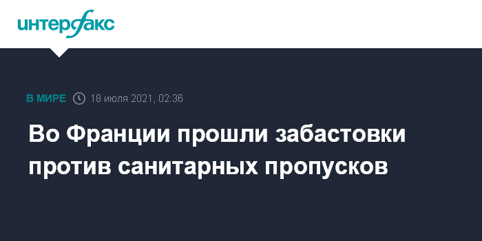 Правительство Эммануэля Макрона предупредило о продолжающемся распространении дельта-варианта. Власти опасаются обострения ситуации в больницах, если не будет вакцинировано достаточное количество людей. Пандемия против COVID-19стоила Франции более 111 тысяч жизней и нанесла серьезный ущерб экономике.