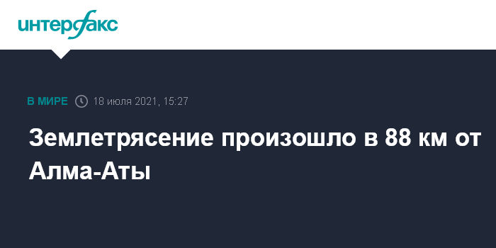 Москва. 18 июля. INTERFAX.RU - В Алмаатинской области на юго-востоке Казахстана в воскресенье в 17:45 местного времени зарегистрировано землетрясение магнитудой 4,1, сообщила сейсмологическая опытно-методическая экспедиция комитета науки Минобразования.