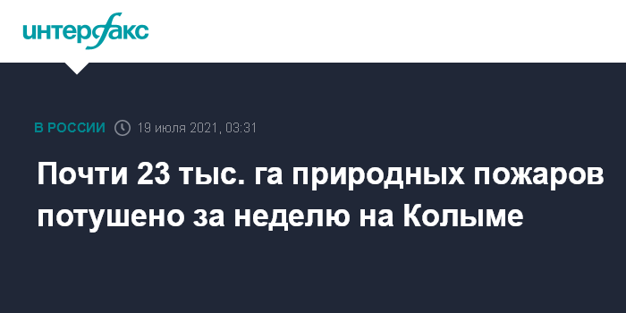 Почти 23 тыс. га природных пожаров потушено за неделю на Колыме