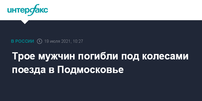 Москва. 19 июля. INTERFAX.RU - Трое мужчин погибли под колесами поезда в подмосковном городе Ивантеевка в понедельник утром, возбуждено дело, сообщает Московское межрегиональное следственное управление на транспорте СКР.