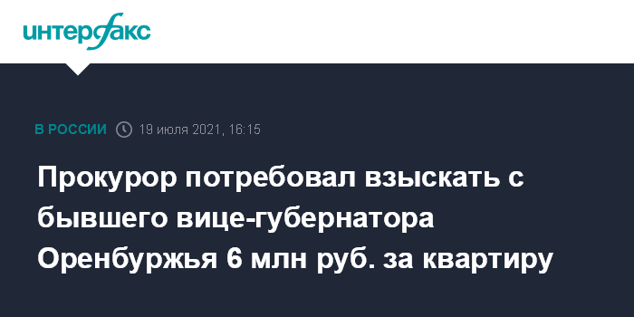Прокурор потребовал взыскать с бывшего вице-губернатора Оренбуржья 6 млн руб. за квартиру